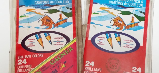 Forty-year-old unconsciously buys HilRoy scribblers, Laurentian pencil crayons